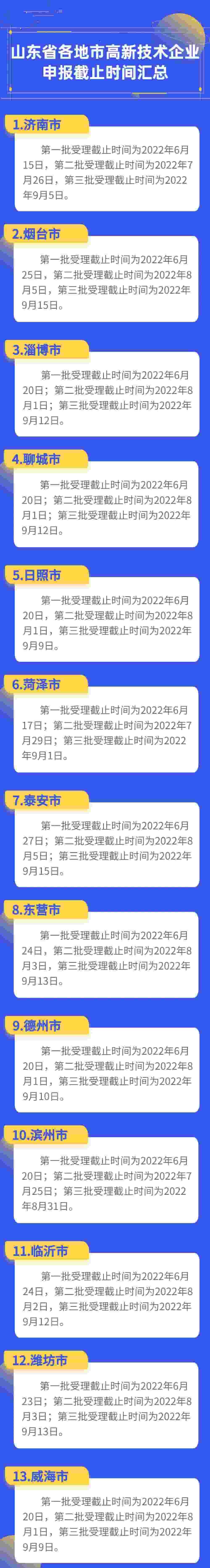 干货 | 山东省各地市高新技术企业申报截止时间汇总