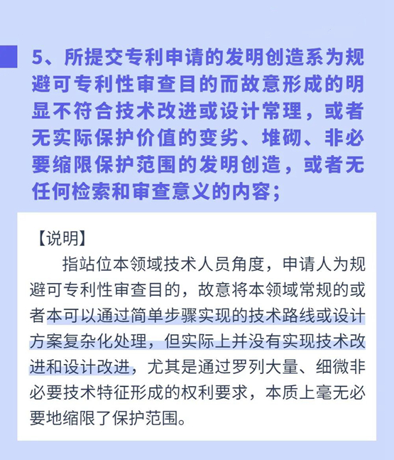 二、如何避免“非正常专利申请”? 申请递交阶段 1、避免以同一发明人递交过多新申请 部分企业发明人为企业实际管理者或研发部门管理者,而不是实际发明人,从而造成同一发明人递交明显过多的新申请文件。 2、避免递交明显不符合企业经营范围的新申请 部分企业法人同时经营多个涉及不同领域的公司,在申请过程中,将涉及A领域的A公司的研发成果以涉及B领域的B公司的名义递交,这样有可能会变成不符合申请人经营范围的新申请。 3、同一发明人的多件相似申请避免由同一代理人进行撰写 同一发明人的多件相似申请本身具有一定的相似性,由于代理人个人用词习惯和思维方式固化,从而撰写用词相似性导致增加系列相似方案的相似度,增加“机检”判断非正常申请的可能性。 意见陈述阶段 1、针对法律价值,可以通过强调缺乏单一性,无法合案申请,申明没有提交非正常申请的动机。 2、针对经济价值,可以通过具体论述每一专利申请在相应领域的经济价值,强调专利布局的目的就是为了保障专利权人的利益,符合专利法的立法宗旨。 3、针对相似方案,可以通过比对相关申请之间的技术方案、区别技术特征、技术效果、实施方式、实例中的数据,结合申请的内容,论述相关技术领域的改进特点。