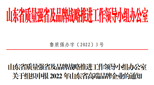 山东省高端品牌培育企业-制造业类