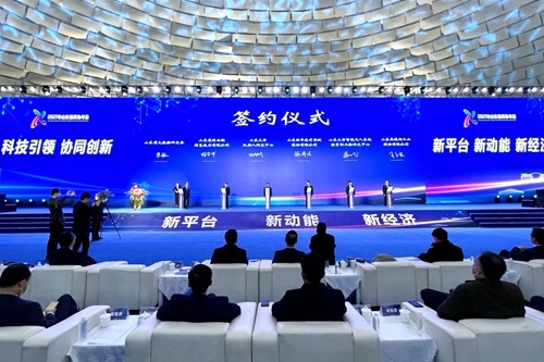 开幕式上,还进行了现场签约,山东省大数据研究会、山东大学机器人研究中心、山东大学智能无人系统教育部工程研究中心、山东省光学工程学会、山东省物联网协会、齐鲁工业大学(山东省科学院),分别与山东爱特云翔信息技术有限公司、新华医疗器械股份有限公司、山东奥德斯工业股份有限公司、齐鲁激光共享产业园、海智造物联科技有限公司、山东巧媳妇食品集团公司,签署6项合作协议。