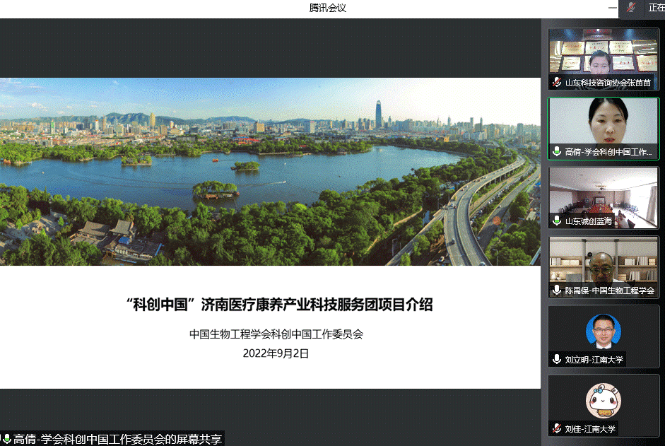9月2日,山东科技咨询协会组织“科创中国”济南医疗康养产业科技服务团专家召开线上技术对接会,中国生物工程学会副秘书长陈禹保、学会“科创中国”工作委员会(筹)秘书高倩,江南大学刘立明教授,山东诚创蓝海医药科技有限公司技术总监张鹏和发展部部长刘占伟等人参会。